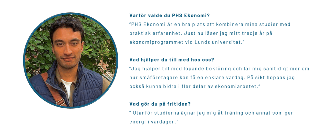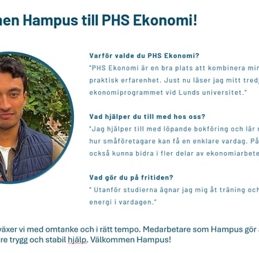 Som liten byrå växer vi med omtanke och i rätt tempo. Medarbetare som Hampus gör att vi kan fortsätta ge småföretagare trygg och stabil hjälp. Välkommen Hampus!